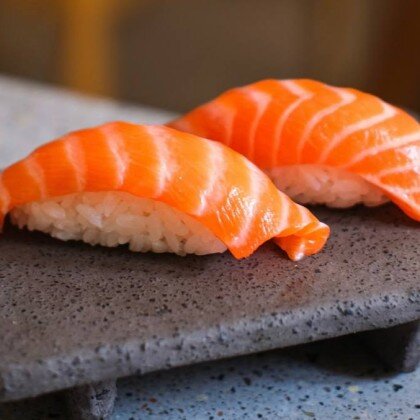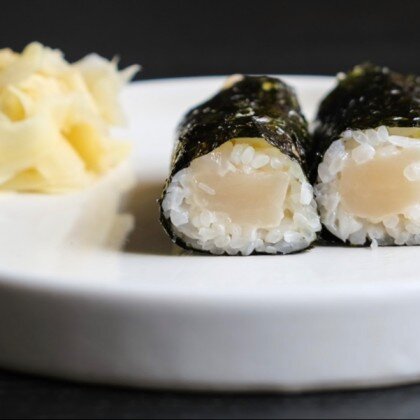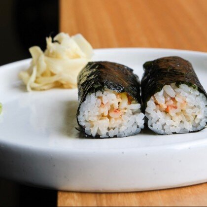 Это популярное японское блюдо, представляющее собой конус из нори (морских водорослей), наполненный свежими и вкусными ингредиентами. Основу ролла составляет сочный лосось, который обладает нежным, слегка маслянистым вкусом. Рыба дополняется рисом для суши, пропитанным рисовым уксусом, а также свежими овощами, такими как огурец или авокадо, которые придают блюду хрустящую текстуру и свежесть. Вся начинка аккуратно завёрнута в хрустящий лист нори, что делает хэнд ролл удобным для еды вручную. Это легкое и изысканное блюдо с насыщенным вкусом рыбы и свежими акцентами.