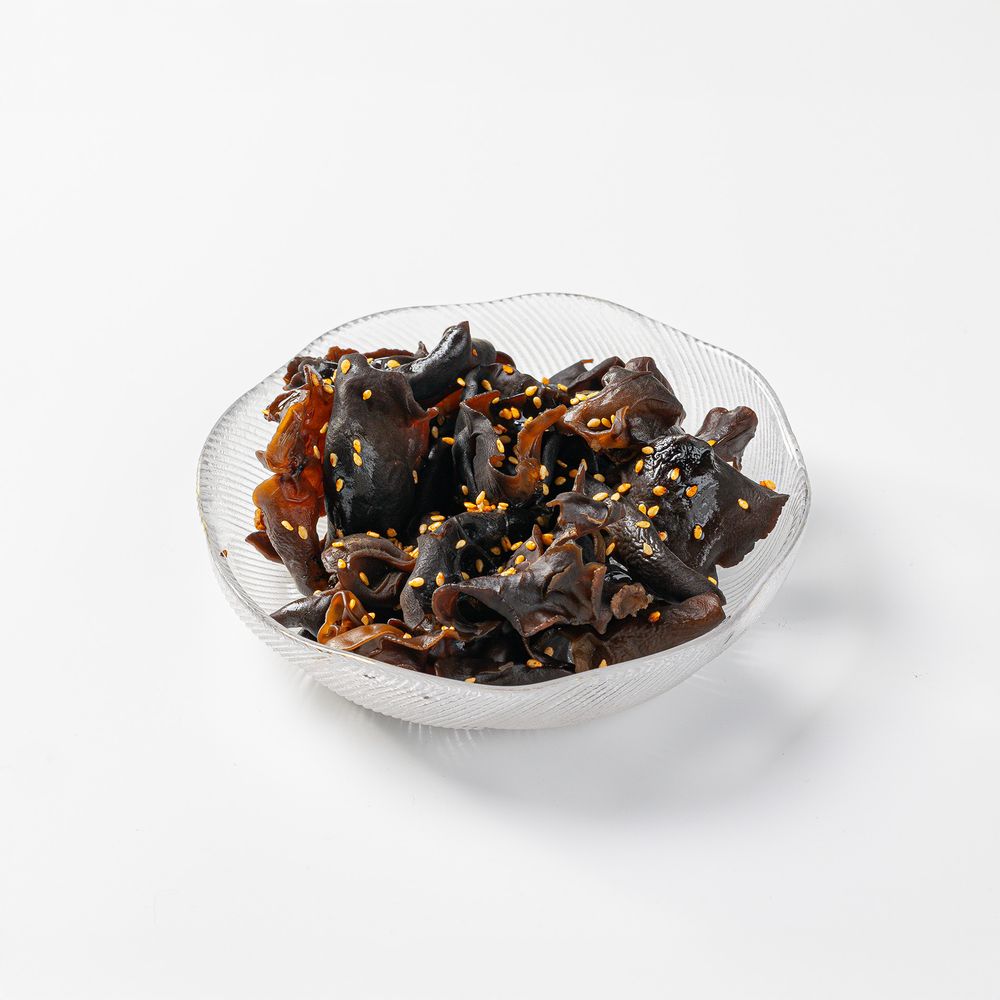 Грибы муэр, соевый соус, уксус рисовый, масло кунжутное, кунжут кимчи